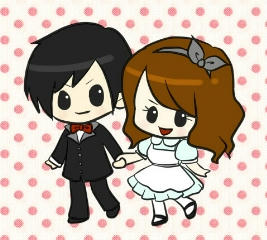ゅう君と私は前にもらった待受イラストを携帯待受にしてます。