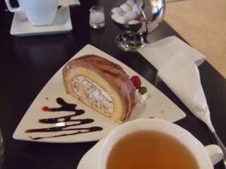 ケーキはマロンとアーモンドクリームのロールケーキとカモミールティー☆