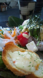 倉庫を改装したとゆう建物と、益子焼きの和食器という不思議な組み合わせ。